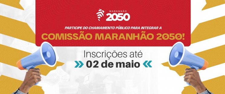 O Governo do Maranhão tem intensificado a participação popular no processo de construção do Plano Maranhão 2050. O chamamento público para novos integrantes da comissão teve suas inscrições prorrogadas para o dia 2 de maio. Representantes de instituições da sociedade civil e de entidades de trabalhadores podem realizar a sua inscrição e ampliar a diversidade neste grupo de trabalho colaborativo e representativo que atuará no processo de elaboração do primeiro plano de longo prazo do Estado.