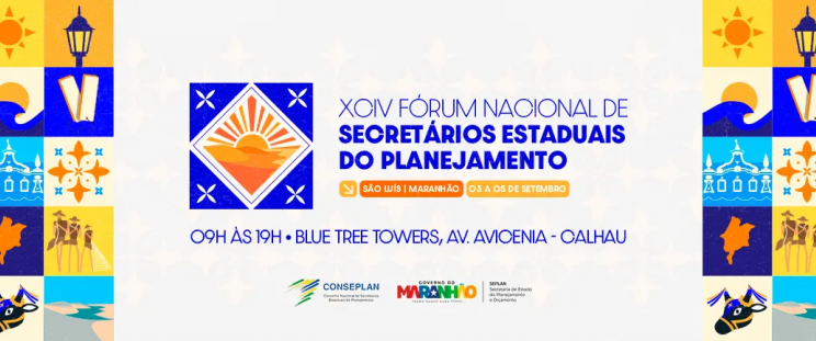 No período de 3 a 5 de setembro, a capital maranhense será sede da 94ª edição do Fórum Nacional de Secretários Estaduais do Planejamento, que reunirá os membros do Conselho Nacional de Secretários Estaduais do Planejamento (Conseplan), entidade formada pelos titulares das Secretarias de Planejamento dos Estados, Distrito Federal e dos órgãos correlatos.
